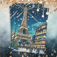 Papel de tecido de Natal representando a Torre Eiffel em Paris, França, num estilo de banda desenhada legal.