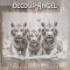 Um retrato espantoso de três tigres brancos majestosos, expulsando graça e poder contra um pano de fundo de paisagens cobertas de neve. Este trabalho de arte capta a beleza e o atrativo dessas raras criaturas