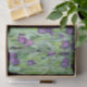 Uma imagem belamente sereno de um campo de tulipas roxas.