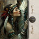 Radiate sacred elegance with Native American woman in turquoise fan decoupage tissue paper from Decoupage_Boutique. This decoupage premium tissue sheet captures a serene beauty in beaded headband and fur-trimmed regalia, eyes closed as she holds a feathered turquoise fan—perfect for luxury boho, spiritual, or feminine furniture and craft projects.Printed on ultra-thin, bleed-proof tissue paper, it layers flawlessly with Mod Podge for a regal, painted-on effect on vanities, jewelry boxes, meditation benches, or vanity trays. The rich turquoise-sepia palette glows on gold, ivory, or dark wood.Crafters love it for: