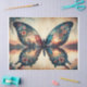 A majestic butterfly with floral wings glows against a twilight lake backdrop. This whimsical and artistic design adds fantasy and color to any surface.