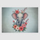 Um toque de verão: O bebê elefante num mar de flores . Essa design encantadora apresenta uma ilustração amorosa de um pequeno elefante bebê, pintado em delicadas sombras de cinza. Suas orelhas cor-de-rosa acrescentam um toque divertido e encantador. Seus olhos grandes e expressivos irradiam curiosidade e amizade, enquanto sua doce expressão facial transmite puro calor. O elefante se encaixa gentilmente entre uma variedade de flores coloridas em tons vibrantes de vermelho, laranja, rosa e branco.