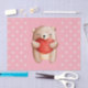Papel tecidular com uma ilustração de aquarela fofinha. Um ursinho castanho carregando um grande coração vermelho. Bolinhas amarelas claras em fundo rosa.