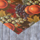 Uvas verdes e roxas, maçãs, e folhas vermelhas e douradas adornam este padrão de colheita, que é uma colagem de designs retrorreflectoras e de outono. As profundas vermelhas, púrpuras (auburgina), maçãs brilhantes, e folhas lindas dão a esta design de cor profunda uma sensação clássica e quente, perfeita para ajudar a embrulhar esse dom ou para usar em artesanatos de papel de tecidos do DIY. Isto também vestiria bem um presente de Ação de Graças, talvez num saco de presentes para uma anfitriã.