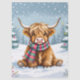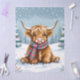 Este papel de tecido de Natal bonito que tem uma ilustração do estilo aquarela de um bebê Highland Cow sentado num campo de neve balbuciosa durante um dia de inverno com um pano de fundo de pinheiros decorados em férias.