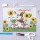 Vaca de Jersey descansando em meio aos girassóis amarelos. O plano de fundo pode ser ocultado ou excluído usando a opção personalizar mais.
