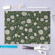 Seamless pattern of white and yellow daisies interspersed with green foliage against a dark forest green background.