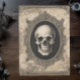 Um design de papel de tecido assombrosamente elegante com uma ilustração do crânio vintage, enquadrado em detalhes góticos do ornamentado. Perfeito para empacotamento de presentes no Halloween, favoritos para festas assustadores, embalagens sazonais ou projetos criativos como o jornalismo lixo e a desvinculação. Um best-seller para o estilo Gótico do Dia das Bruxas e projetos inspirados na vintage.