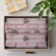 Um design de mariposas de estilo vintage sobre um padrão de listras cor-de-rosa. Excelente para projetos de desvinculação, embrulhamento de presentes ou raspagem.
