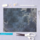 Uma colagem de navios sobre um fundo azul angustiado e acentuado com um florescimento.