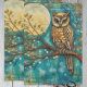Uma coruja majestosa em um galho de árvore e uma lua de cheio sobre um fundo azul angustiado. Use para empacotamento de presentes ou para projetos de artesanato de papel.