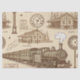 Classic travel pattern tissue paper featuring steam trains, station clocks, railway buildings, tickets, and vintage travel elements in an old-world style. Ideal for train lovers, railway enthusiasts, history fans, and anyone who loves nostalgic travel aesthetics.