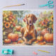Um Vizsla Húngaro gracioso retratou em meio a uma cascata de folhas vibrantes do outono em tons ricos de laranja, vermelho e ouro. Esse design encantador captura a elegância da raça aliada à beleza natural da temporada de outono, criando uma combinação perfeita de encanto canino e calor sazonal.