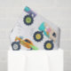 A fun and playful seamless pattern featuring colorful monster trucks with bold tires, dripping paint details, and cute cartoon style. Perfect for kids