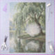 Decoupage tissue paper featuring a scene of a white peacock displaying its feathers beneath a graceful weeping willow.