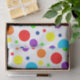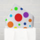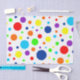 Manchas arco-íris de diferentes tamanhos num fundo branco.