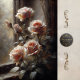 Window Roses in Blush features a cluster of vintage-style roses blooming beside an old window, painted in warm blush, cream, and muted antique tones. The composition feels intimate and timeless, with gentle shadows and a softly weathered texture that gives the piece depth and soul.