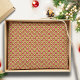 Papel timínico de tecidos de Natal criado com a vintagem desenhada à mão, inspirado por coroa aquosa e arco sobre fundo vermelho profundo. Papel de embalagem de coordenação disponível. Arte original de Leslie Larson.