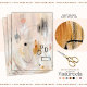 Uma fantasia neutra de arte abstrato com tons de bege, coral, preto, cinza e amarelo quente feitos com mídia mista.
