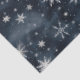 Os flocos de neve brancos e prateados caem num céu azul escuro à noite neste inverno maravilhoso da Terra Marinha de Natal que é exatamente o ideal para o seu elegante papel de tecidos de férias. Este é o terceiro de três designs antigos que diferem um pouco especialmente no tom do céu: Este apresenta um céu azul escuro de fundo entre as nuvens.