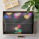 Comemore a época de férias de inverno com esta foto original, colorida e abstrato, de luzes de Natal desfocadas. O boque criou das luzes cor-de-rosa, vermelha, laranja, azul, verde e amarela forma de uma árvore de Natal. O fundo da imagem vertical é preto. Fotografia digital a cores. Copyright © Claire E. Skinner. Todos os direitos reservados.