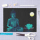 Papel de tecido dotado com imagem de Buda com flor de lótus e lua de cheio.