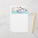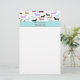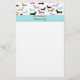 Este divertimento escrevendo cães coloridos pequenos do dachshund das características dos artigos de papelaria na parte superior. Um gráfico de uma fita do aqua funciona através da parte superior que espera seu texto personalizado.