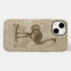 Uma bonito ilustração de avestruz vintage em um caso de iPhone 14 em segundo plano do script do rico.