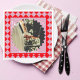Adicione um toque doce e retrô ao seu casamento com este guardanapo de casamento rosa e vermelho, projetado para impressionar! A borda ousada em xadrez em vermelho rico e rosa divertido emoldura a foto do casal favorito, destacada por um detalhe de borda rendilhada. A palavra “Saúde!” adiciona o toque festivo perfeito, com texto personalizável para nomes e a data especial.