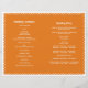 Papel laranja Picado ama pássaros, programa dobrado de fiesta de casamento. Mostra dois pombinhos brancos e um coração de amor com a palavra amor e flores, folhas e pequenos pontos em vermelho em cor laranja. Este modelo de casamento floral do estilo popular mexicano é perfeitamente personalizável. Use apenas esse tipo de papel à medida que ele se dobra.