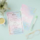 Menu de Casamento das Cores de Água do Teal Cor-de-Rosa-Ordenada. Um alternativo PAPER (não cartão) com valor de excelente SEM ENVELOPES com tamanho menor de 4,5" x 5,6" e a um preço orçamentário. (envelopes A6 padrão são o tamanho mais próximo ao ajustado) Este design elegante tem belas aquarelas pastel com salpicos de ouro para os corantes superior direito e inferior esquerdo. Com tipografia de na moda que está centrada. Personalize facilmente o texto para seus próprios detalhes, o que inclui alternativos para suas opções de vegan.