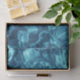 As ondulações azuis criam um padrão de anéis elípticos nesta foto de abstrato. As cores no cianótipo vão do azul claro ao marinho. Fotografia digital a cores. Copyright © Claire E. Skinner. Todos os direitos reservados.