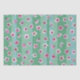 As flores de ameixa cor-de-rosa flutuam sobre listras verdes e aqua.
