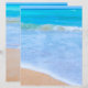 Papel de rascunho de cena em praia com imagem em ambos os lados de papel de 8,5 x 11 polegadas. Água azul tropical e pequenas ondas subindo na praia é a imagem. Cada lado é um pouco diferente. Escolha o tipo de papel que você prefere.