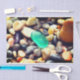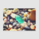 Papel tecidular com imagem de vidro azul-marinho numa praia de seixo.