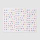 Design apresenta o alfabeto padronizado em letras brilhantes e coloridas de estêncil sobre um fundo branco. Projetado para coordenar com a "Coleção de Chás de fraldas ABC".