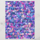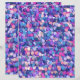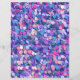 Camadas de confete redondo espalhado em roxo, turquesa, azul e rosa.