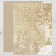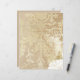 Design apresenta giros elegantes e vintage de ornamentado de ouro e roteiro em fundo de papel pergaminho.