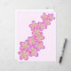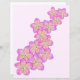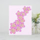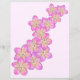 Apresenta flores rosa desenhadas à mão e frangipanas amarelas num fundo cor-de-rosa.