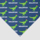 Papel Tecidual de Natal para crianças com dinossauro engraçado para Papais noeis. Roupas de presente divertidas para presentes e favoritos para festas de Natal. Design alegre com o dino t-rex vestindo um chapéu de Papai Noel. Cor de fundo azul ou personalizada. Adicione o nome do seu filho.