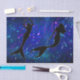 Papel de lenço de sereia azul Shimmery com silhuetas de Sereias nadando.
