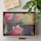 Papel tecidular com imagem de rosas e botões cor-de-rosa.