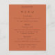 Texto Simples Menu de Casamento Terracotta. Um alternativo PAPER (não cartão) com valor de excelente SEM ENVELOPES com tamanho menor de 4,5" x 5,6" e a um preço orçamentário. Você também pode alterar o estilo e as cores da fonte e as cores de fundo na frente e na parte traseira, se desejar, por meio da opção Clique para Personalizar mais.