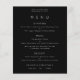 Menu de Casamento Preto Branco de Texto Simples. Um alternativo PAPER (não cartão) com valor de excelente SEM ENVELOPES com tamanho menor de 4,5" x 5,6" e a um preço orçamentário. Você pode alterar o estilo e as cores da fonte e as cores de fundo na frente e na parte traseira, se desejar, por meio da opção Clique para Personalizar mais.