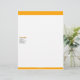 Uma laranja clássica barra o cabeçalho, disponível em 5 tipos de papel. As características de design seu nome da empresa (na laranja) e mensagem da empresa (no preto) na parte superior, seguida por linhas de endereços e de informações de contacto opcionais (nas cinzas), nestled toda entre dois bares alaranjados de alturas diferentes na parte superior e na parte inferior da página. No bar inferior é um endereço opcional da Web (na obscuridade - cinza).