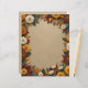 Creamy white, golden yellow, coppery orange, and cocoa brown flowers, mixed with colorful autumn leaves on a dark tan background makes this stationery perfect for autumn.