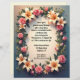 Lírios brancos e rosas cor-de-rosa criam uma moldura em pergaminho, contra um fundo de gradiente escuro neste convite a um memorial ou celebração da vida. A parte de trás é simples, e a mesma cor de pergaminho da frente. Muito bonita.