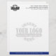 Acento azul - Carregue o logotipo e insira as informações de sua empresa. Este design inclui uma marca d'água do seu logotipo em segundo plano.