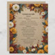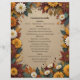 As flores brancas e douradas combinam-se com folhas castanhas e douradas para criar uma bela moldura para um menu Ação de Graças. Também pode ser usado para um casamento, aniversário ou convite de aniversário, ou para cartas. O dorso é sólido, o mesmo que o centro na frente.