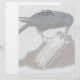 Um desenho a lápis colorido de um curioso corvo investigando uma harmônica brilhante enfeita este papel de carta personalizável!